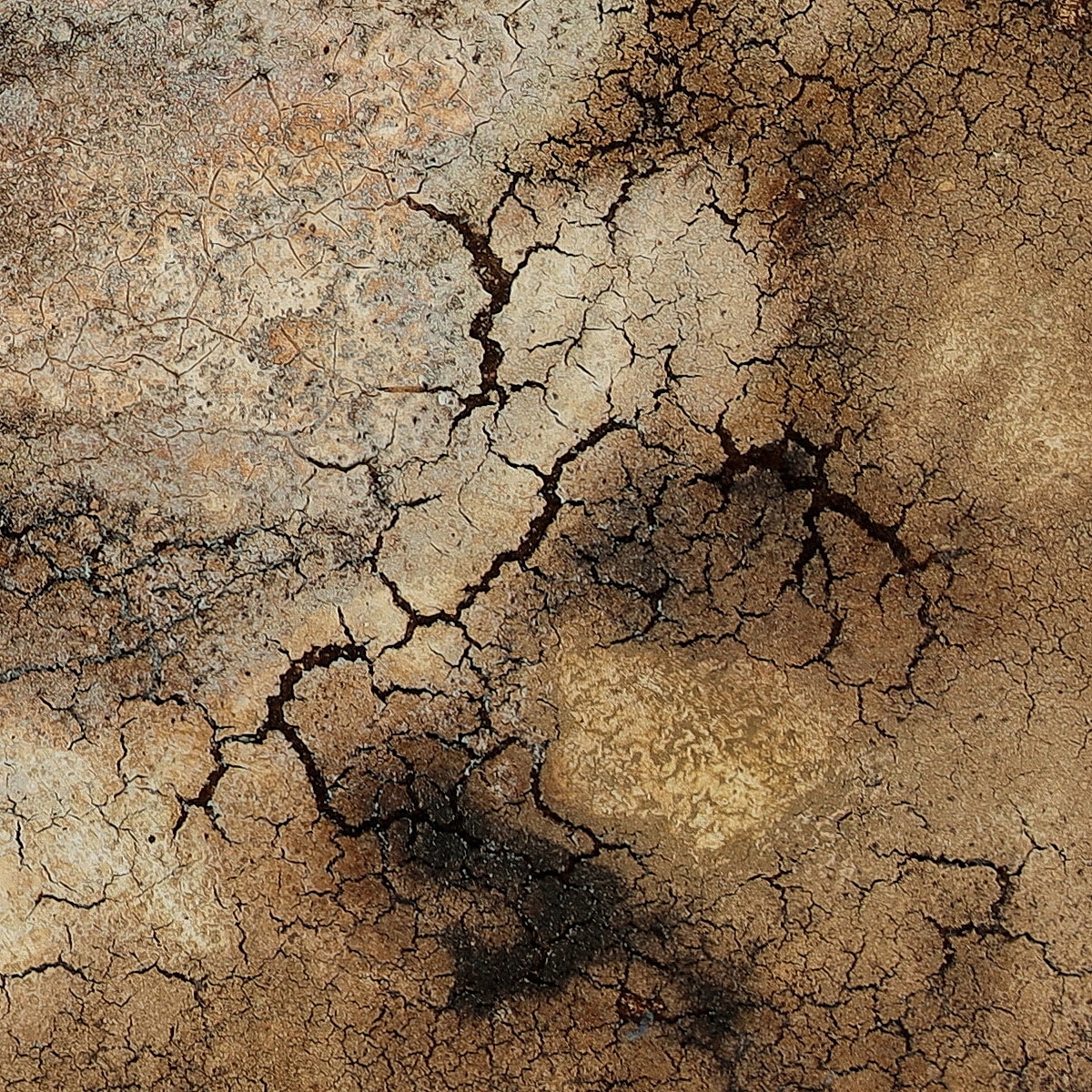 SOIL #1 | 2025 | 70 x 50 cm | Kaffeemehl, Marmormehl, Intonaco, Beize, Hämatit und Pigment auf Leinwand